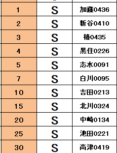 なお、同数NETの場合は、生誕の早い方順となります。また、今回は、SS区分は、Gs区分と統合となっています。